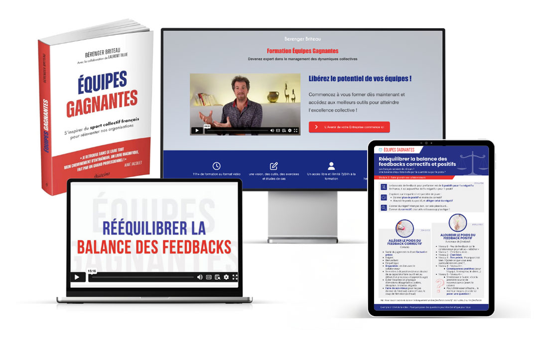 À la suite du livre, j’ai voulu créer une formation pour déployer la méthode « équipes gagnantes » avec des outils concrets. Tous les outils que je transmets aux managers lors de formation en présentiel y sont !